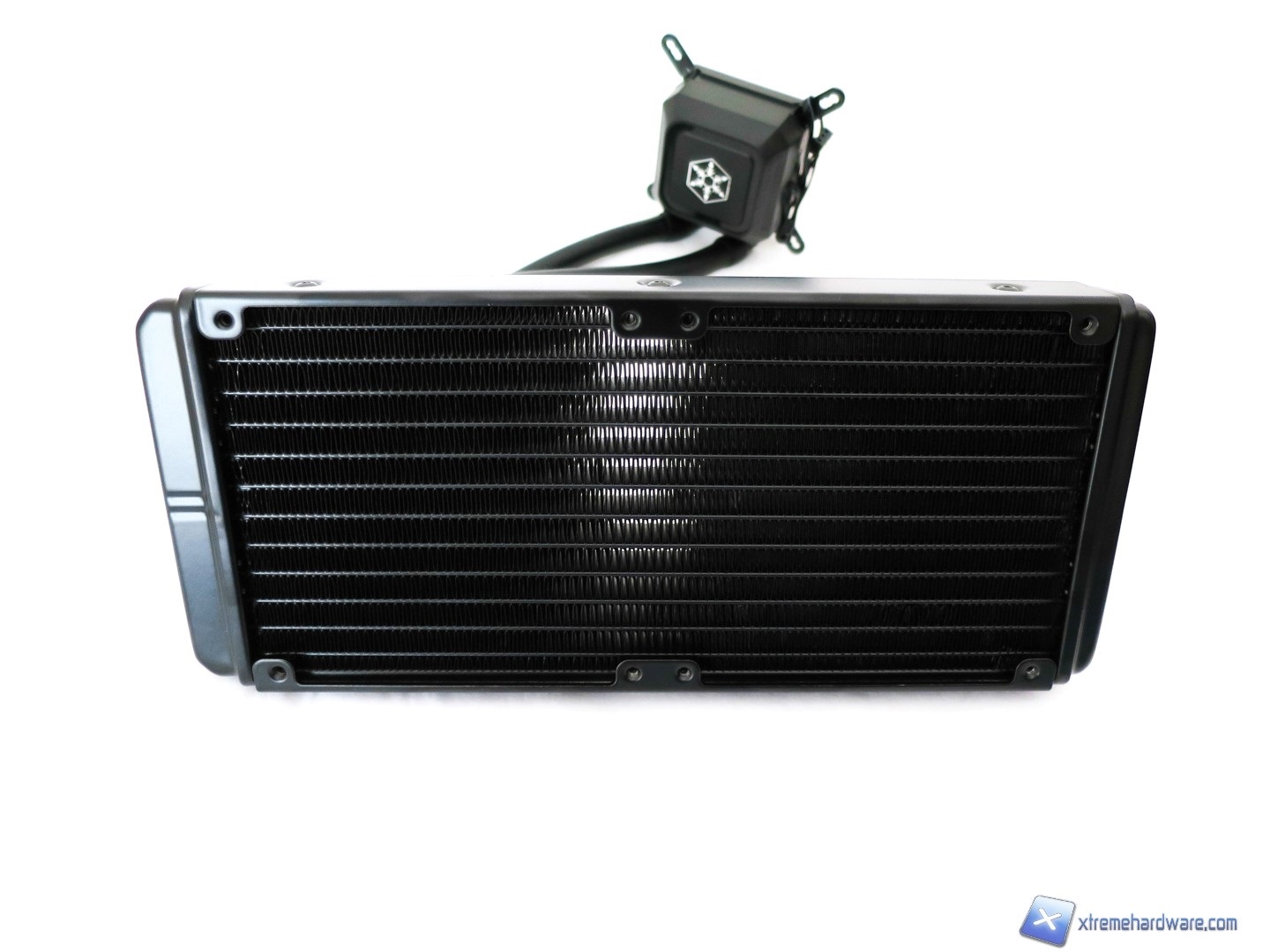 Al Il radiatore è in alluminio verniciato in modo ottimo di nero per rendere classico ed elegante l’aspetto del dissipatore. Il modello TD02-Lite, come vediamo, adotta inoltre un radiatore da 240mm su cui potremo montare le due ventole SilverStone incluse nella confezione o sostituirle con altre. Le dimensioni esatte del radiatore sono di 273 x 120mm con il classico spessore di 27mm che lo fanno rientrare nella categoria dei radiatori Slim. Il FPI si attesta a 20 dunque avremo un radiatore Slim ad alta densità. Come abbiamo visto con il modello TD03-Lite, non avremo problemi a farlo rendere al meglio grazie alle due ventole che offriranno un’ottima pressione.