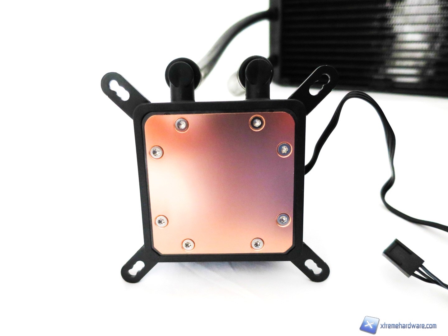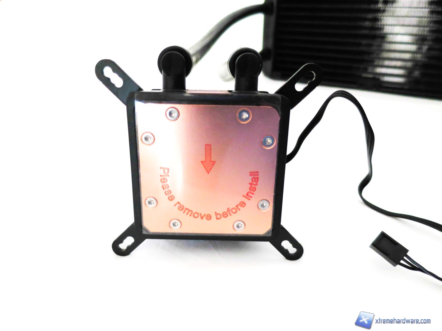 Passando alla base di contatto e dunque al waterblock, come ogni altro AIO che si rispetti, anche il Tundra TD02-Lite è caratterizzato da una base in rame, non lappata a specchio. Nella parte interna il waterblock è realizzato con microcanali con spessore di 0.2mm per aumentare lo scambio termico e incrementare le prestazioni. Il waterblock nella parte inferiore è tenuto in sede con viti di sicurezza per evitare un eventuale disassemblaggio che porterebbe ad invalidare la garanzia. Appena estratto, inoltre, è protetto da un film adesivo da rimuovere prima dell’installazione. Non troviamo il classico strato di pasta termica preapplicata, che spesso porta a nostro avviso più “danni” che benefici. L’utente in questo caso potrà utilizzare quella in dotazione nel tubetto o usarne una di sua preferenza per aumentare ancor più le prestazioni dissipative del Tundra TD02-Lite.