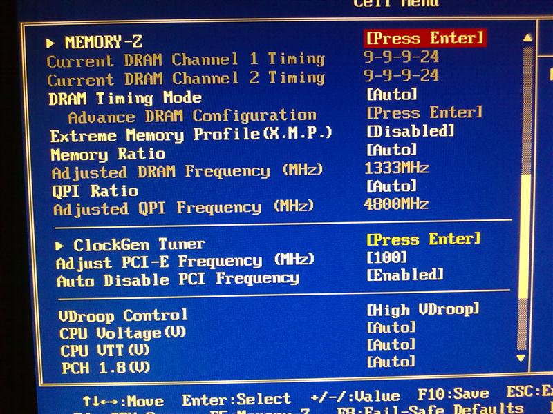Questo è il menù di chi vuole overclockare il proprio sistema, infatti è possibile variare tutti i parametri, anche in maniera manuale, partendo dalla frequenza del Bclk, del moltiplicatore della cpu, del divisore della ram, dei timing delle DRAM, voltaggi per la cpu, del controller di memoria, voltaggi per i moduli di ram installati, voltaggi per il generatore di clock, voltaggi per il pch,  abilitare o meno le feature per l'extreme memory profile, ed altri paramentri.
