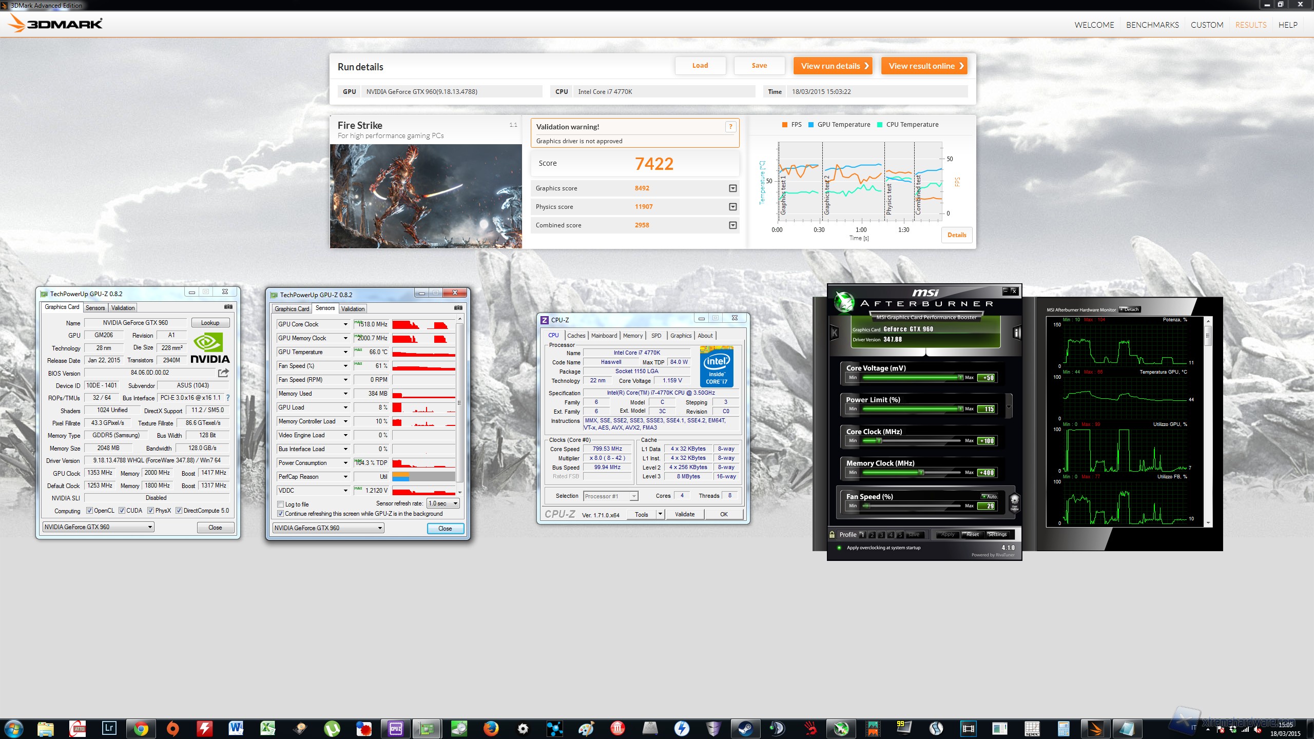 Andiamo ora a vedere come si comporta questa scheda in overclock. L’overclock, per chi non lo sapesse, consiste nel perseguire il miglioramento delle prestazioni di un componente elettronico di un elaboratore (in genere una CPU) mediante l'aumento della frequenza di clock rispetto a quella prevista dal produttore. Ricordiamo che la scheda oggetto della recensione odierna presenta un overclock di fabbrica di +139 MHz in boost clock e +126 MHz in base clock per quanto riguarda il core, mentre le memorie non hanno subito nessun overclock di fabbrica. Vi ricordiamo brevemente le frequenze stock della scheda oggetto della recensione odierna: 1253 MHz base clock, 1317 MHz boost clock per il core e 1753 MHz (7010 MHz effettivi) per le memorie. Da queste frequenze, aumentando il Power Limit fino al valore 115 e erogando +50mV di voltaggio, siamo riusciti a raggiungere i 1417 MHz sul core in boost clock e 2000 MHz (8000 MHz effettivi) per le memorie, toccando punte sul core di 1518MHz in Kepler boost. Con queste frequenze abbiamo chiuso il 3DMark 2013 ottenendo i seguenti risultati: